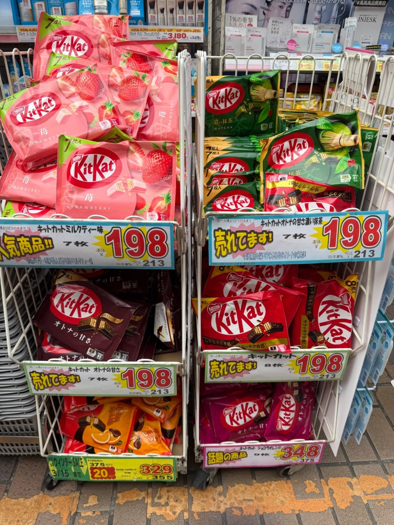 Discover a world of unique KitKat flavors in Japan! 🍫 From matcha green tea to sake, wasabi, and even sweet potato, these limited-edition treats offer a delightful twist on the classic chocolate bar. Perfect for souvenirs or a tasty snack, each flavor reflects Japan’s rich culinary culture. Don’t miss the chance to try them all while exploring! Which flavor are you most excited to taste? Each prefecture has their own.