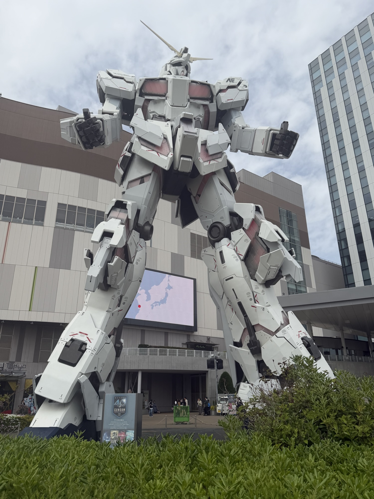 As the train approaches Odaiba, the towering figure of the Gundam robot comes into view, a striking sight against the urban backdrop. Standing at 18 meters tall, this iconic character from the popular anime series is a marvel of engineering and artistry. Its vibrant colors and intricate details draw attention, making it a favorite for photos. The Gundam stands proudly outside Diver City Tokyo Plaza, surrounded by shops and restaurants, embodying the spirit of Japanese pop culture and attracting visitors from around the world. Let’s go visit this huge robot!